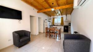 Departamentos de dos dormitorios con baño privado cada uno, cocina y estar comedor. Están equipados con aire acondicionado, carpintería de aluminio DVH y calefacción por estufa a gas, TV, vajilla para 4 personas y blancos.